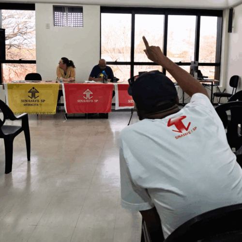 O Sinasefe-SP realizou, nesta quinta-feira, 4, uma Assembleia Geral Extraordinária que aprovou uma paralisação nacional dos dias 10 e 11 de setembro contra a Reforma Administrativa e pelo cumprimento dos acordos de greve assinados em 2024. Além disso, a AGE elegeu os representantes do Sinasefe-SP para a 205ª Plenária Nacional do Sinasefe.
