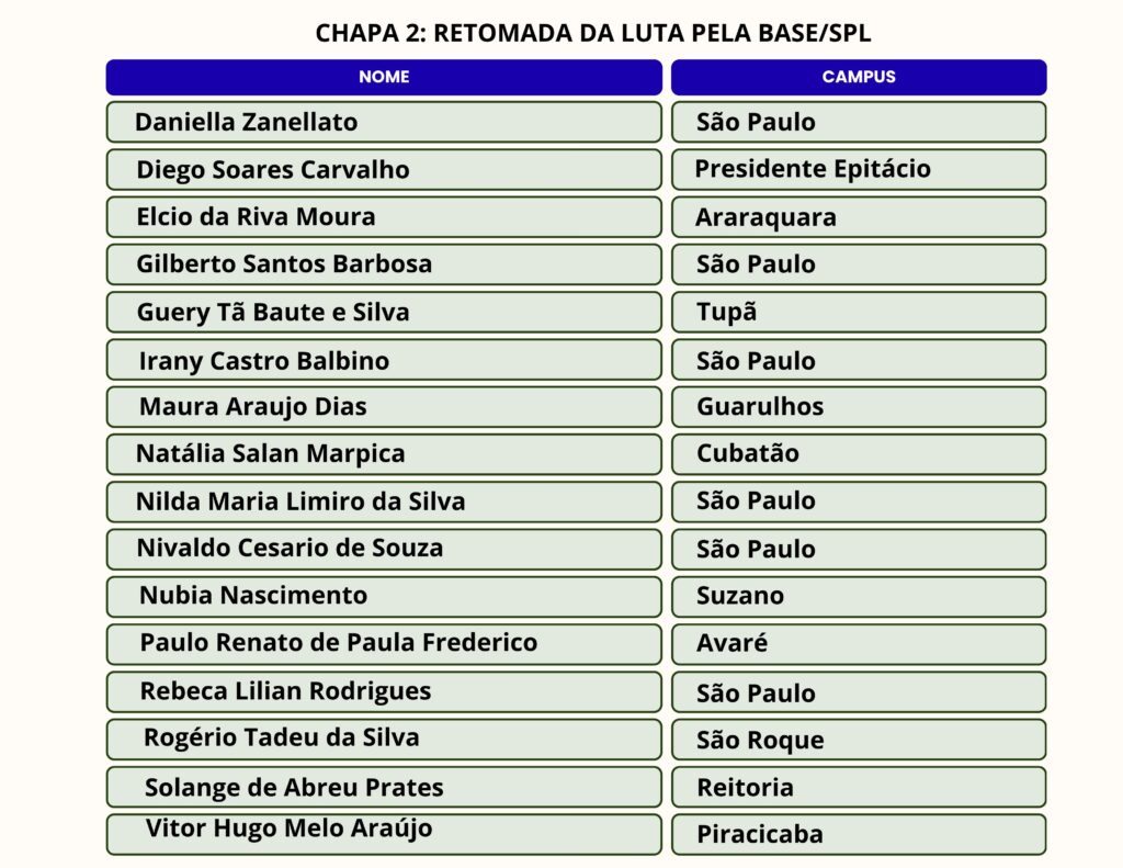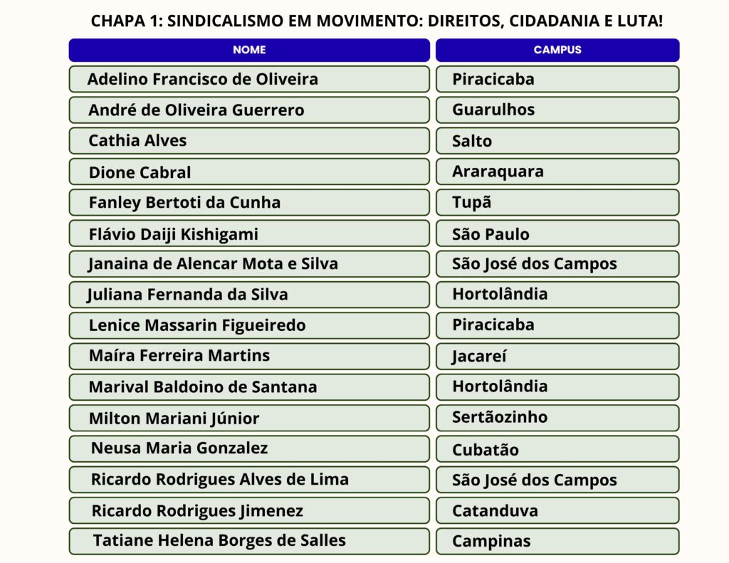 Duas chapas se inscreveram para o processo eleitoral da Coordenação Funcional do SINASEFE-SP 2025-2027.